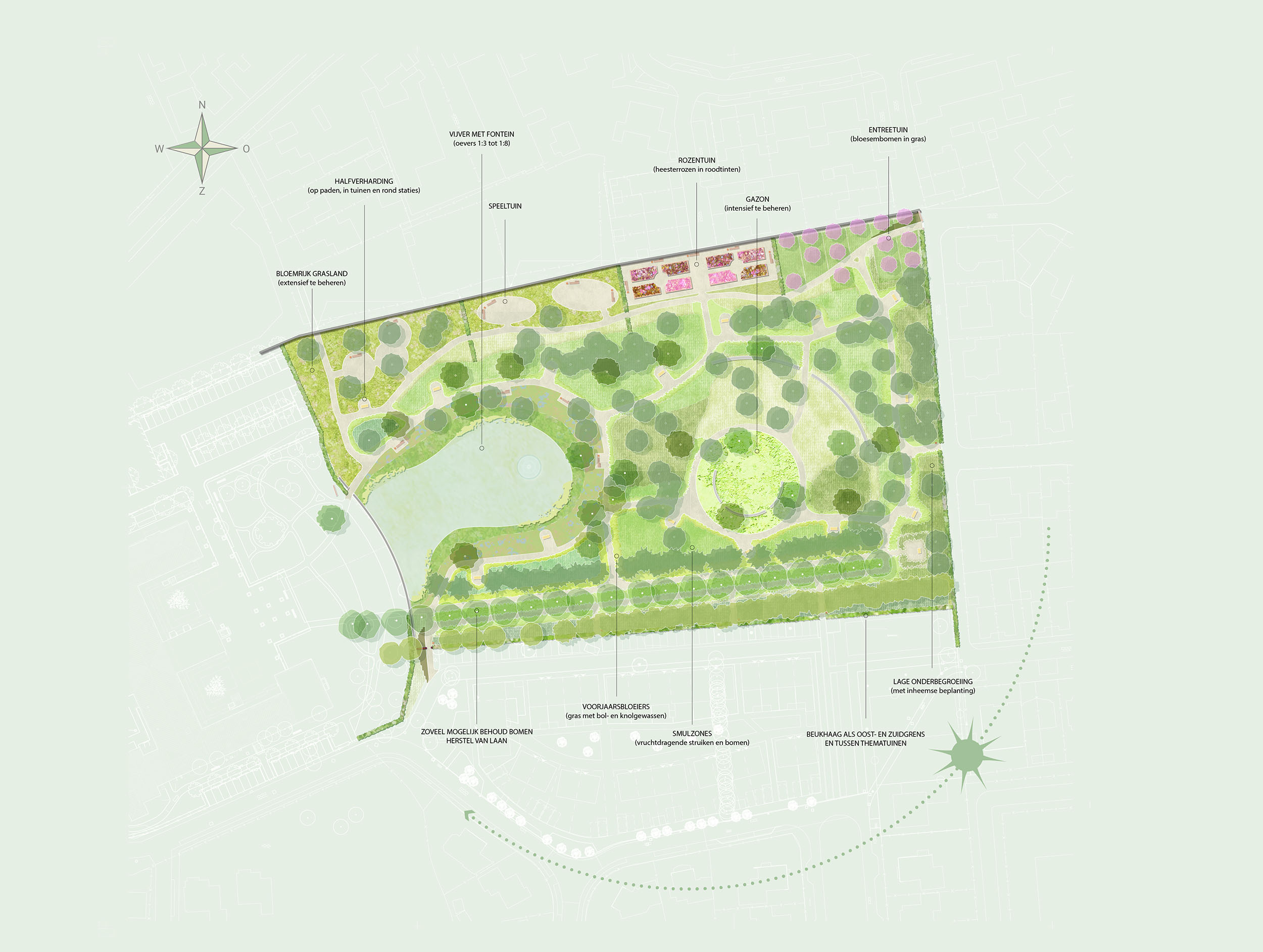 • Recreatie. De hoofdfunctie van het nieuwe park; verblijven, genieten, bewegen.