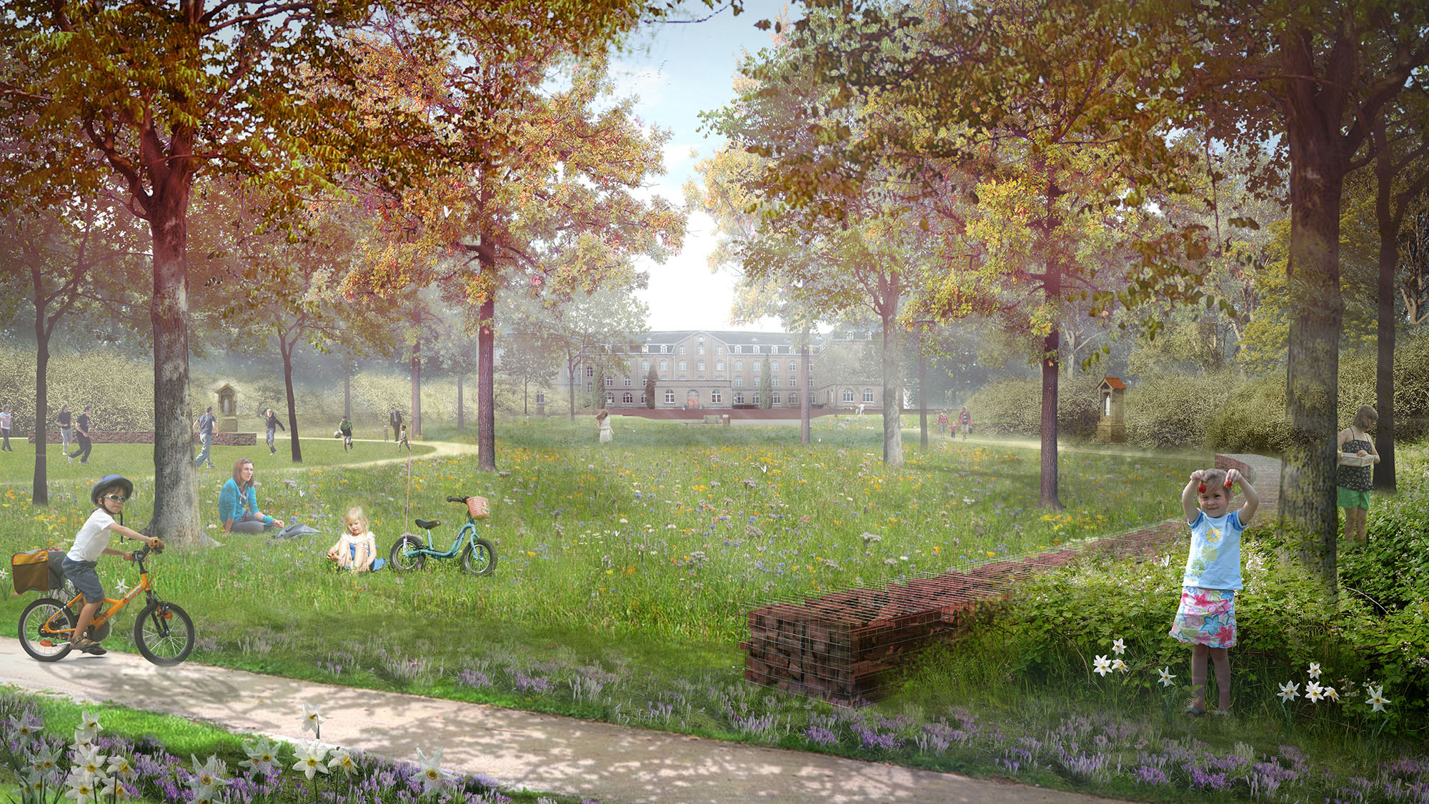 In het stadspark is veel aandacht uitgegaan naar het opnieuw betekenis geven van de bidlaan en kruisweg. Daarnaast is gekeken in hoeverre relicten van het vroegere grondgebied (zoals kloostermuur, berceau, en kapel) bij kunnen dragen aan het verhaal en de beleving.